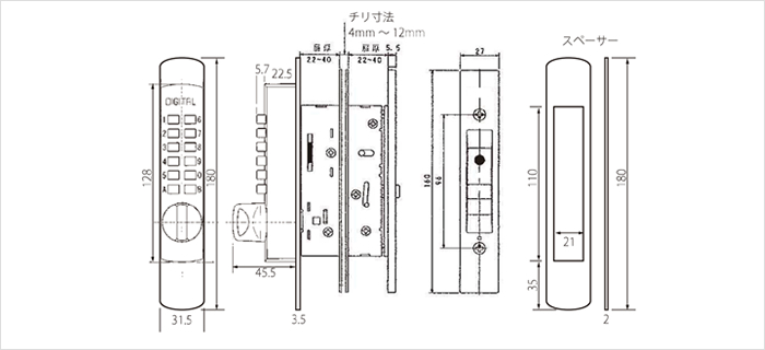 テンキーのメカニカルな機構を備えながら、軽量でコンパクトに設計された本体は、デザイン性の高い細框の戸にも対応することが可能。美観も守ります。